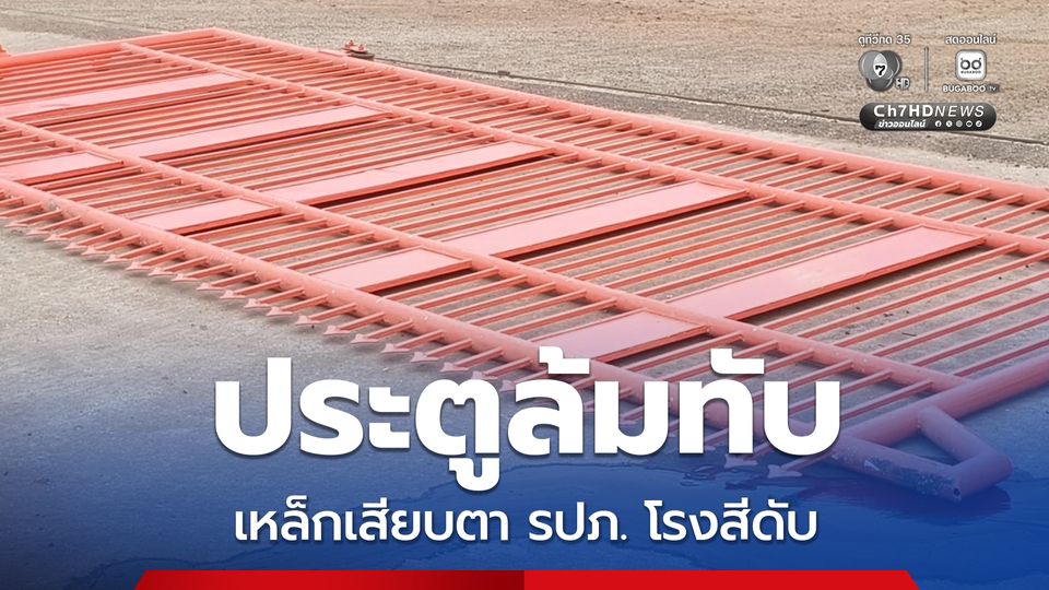 รปภ. อายุ 63 ปี ถูกประตูโรงสีล้มทับ เหล็กเสียบเข้าที่บริเวณขอบตาขวาติดโพรงจมูกเลือดไหลนองพื้น