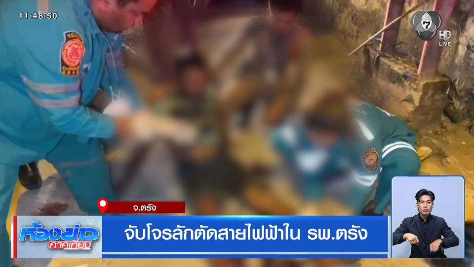 ห้องข่าวภาคเที่ยง - โจรลักขโมยสายไฟฟ้าระบบสาธารณูปโภคในโรงพยาบาลตรัง ซิ่งรถจักรยานยนต์หนีกว่า 5 กิโลเมตร สุดท้ายกรรมตาทัน เสียหลักพุ่งชนฐานปูนป้ายศาลพระพิฆเนศวร ขาหักทั้งสองข้าง