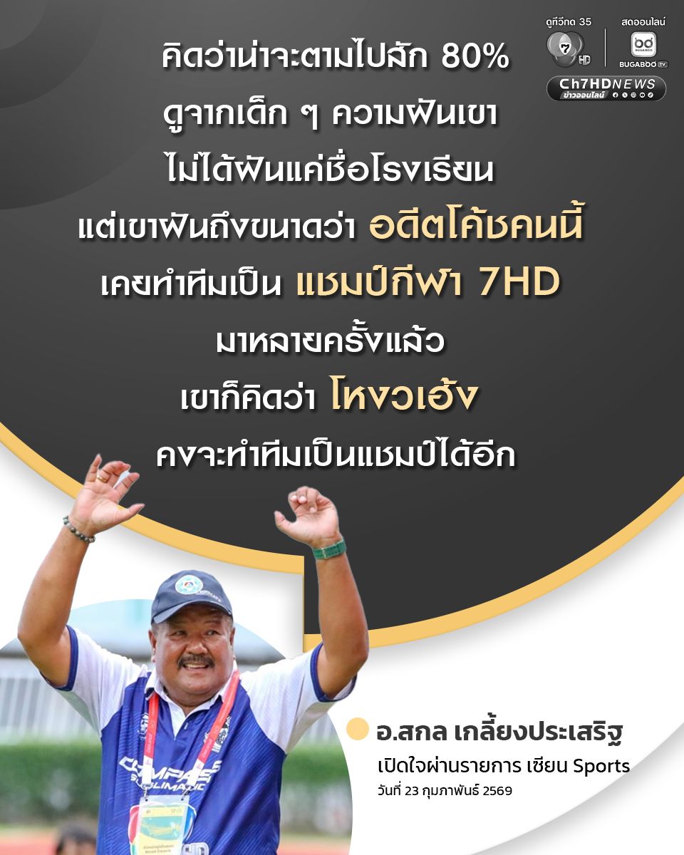 อ.สกล กล่าวต่อว่า สำหรับตัวเด็ก ตนได้มีการคุยมาตั้งแต่เนิ่น ๆ แล้ว โดยเฉพาะรุ่นพี่ ก็บอกว่า ถ้าผลงานเรายังได้ไม่ถึงฝัน มันต้องมีอะไรที่ทำให้เรากระเตื้องขึ้น หรือกระตุ้นขึ้น ต้องฉีดดฮอร์โมนเข้าไปอีก เพื่อให้เด็กได้พบเป้าหมายที่สำคัญก็คือการเป็นแชมป์ ถ้าเรายังอยู่เหมือนเดิม ฟุตบอลนักเรียน 7 คน แชมป์กีฬา 7HD ปีนี้ เราไปไม่ถึงแน่นอน ทางที่ดีสุดเลยคือควรจะเปิดช่องทางให้กับบุคคลอื่น เข้ามาทำให้หมอนทองได้แชมป์