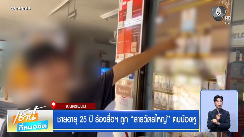เช้านี้ที่หมอชิต - ชายอายุ 25 ปี ร้องสื่อว่าถูกสารวัตรใหญ่นายหนึ่งตบบ้องหู ในงานหมอลำ พร้อมเข้าแจ้งความที่ สภ.พระซอง