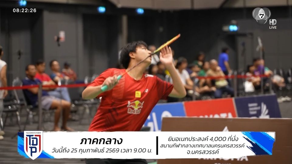 รายการ SAT NSDF Badminton Thai Domestic Power 2026 รอบภูมิภาค สนามที่ 2 ภาคกลาง เริ่มแล้วตั้งแต่วันนี้-25 กุมภาพันธ์ 2569 ที่ยิมอเนกประสงค์ 4,000 ที่นั่ง สนามกีฬากลางเทศบาลนครนครสวรรค์ จังหวัดนครสวรรค์