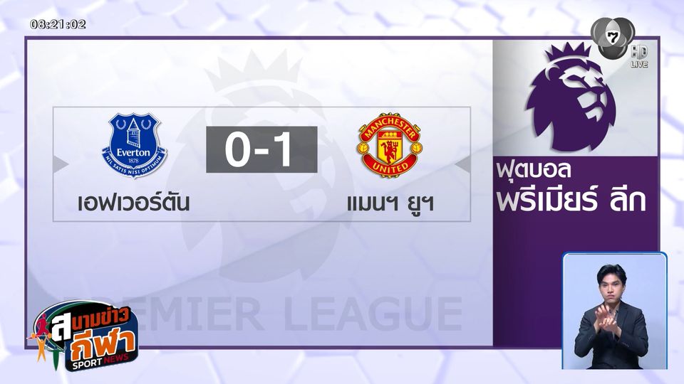 สนามข่าวกีฬา - ผลฟุตบอลพรีเมียร์ ลีก อังกฤษ นัดมันเดย์ไนท์ แมนยูฯ บุกไปเอาชนะ เอฟเวอร์ตัน หวุดหวิด