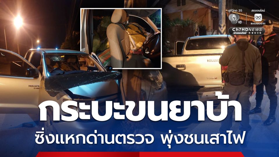 ทหาร-ตำรวจ สนธิกำลังไล่ล่ากระบะแหกด่านตรวจ เจอเสียหลักพุ่งชนเสาไฟ อ.แม่อาย จ.เชียงใหม่ ค้นในรถพบยาบ้า 1.6 ล้านเม็ด รวบผู้ต้องหา 1 ราย ส่งดำเนินคดี