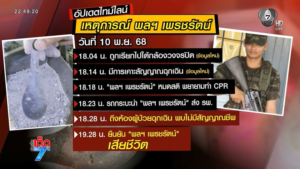 ประเด็นเด็ด 7 สี - การเข้าพบ ทหาร มทบ.12 เพื่อเคลียร์ปมคาใจครอบครัว "พลทหาร เพรชรัตน์" ครอบครัวได้มีโอกาสดูภาพวงจรปิด พบว่าสอดคล้องกับข้อมูลเรื่องการทำร้ายร่างกาย อย่างมีนัยยะสำคัญ