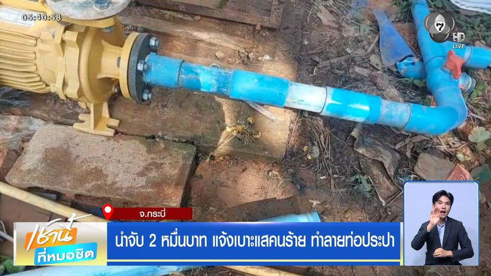 เช้านี้ที่หมอชิต - ตามล่าหาคนอะไร ? ทำลายระบบประปาหมู่บ้านในพื้นที่ จังหวัดกระบี่ ทำชาวบ้านใน 3 หมู่ รวมกว่า 300 ครอบครัวได้รับความเดือดร้อน