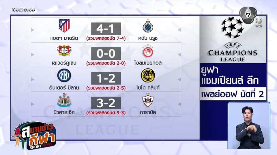 สนามข่าวกีฬา - ผลฟุตบอลยูฟา แชมเปียนส์ ลีก รอบเพลย์ออฟ นัดที่ 2