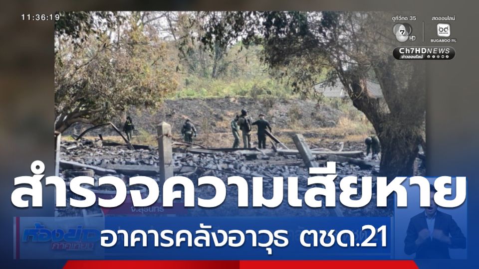ห้องข่าวภาคเที่ยง - เจ้าหน้าที่หน่วยเก็บกู้วัตถุระเบิด เริ่มสำรวจความเสียหาย คลังแสงอาวุธ ตชด.ที่ 21
