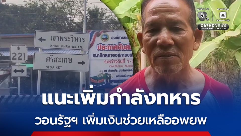 ชาวบ้านชายแดนยังใช้ชีวิตปกติแต่ไม่ประมาท เตรียมพร้อมตลอดเวลา หลังมีเหตุกัมพูชายิงปืน ค.ใส่ฝั่งไทย วอนรัฐบาลจัดการปัญหาชายแดนให้เด็ดขาด เพิ่มกำลังทหารให้มากขึ้น หากต้องอพยพจริง รัฐฯ ควรเพิ่มเงินช่วยเหลือค่าน้ำมัน