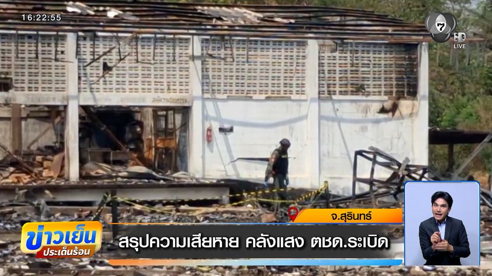ข่าวเย็นประเด็นร้อน - ตำรวจตระเวนชายแดน และจังหวัดสุรินทร์ ร่วมกันสรุปความเสียหายจากการระเบิดของคลังแสงแล้ว พบว่าสูญเสียกระสุนทั้งลูกระเบิด ลูกจรวด และกระสุนปืนเล็กยาวไปทั้งหมด 400,000 นัด