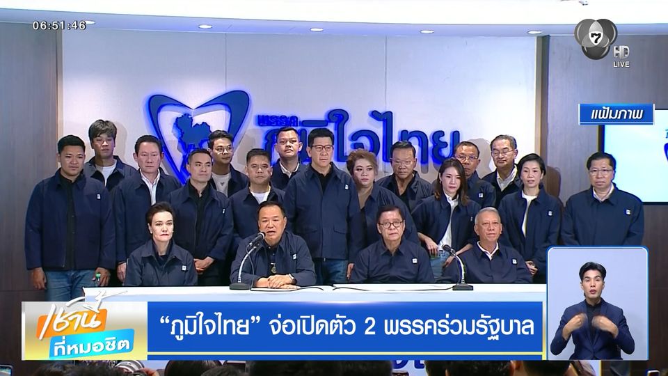 ในวันนี้ (26 ก.พ.) พรรคภูมิใจไทย เตรียมเปิดตัวอีก 2 พรรคร่วมจัดตั้งรัฐบาล คือ พรรคพลังประชารัฐ ที่มี 5 เสียง นำโดย นางสาวตรีนุช เทียนทอง หัวหน้าพรรคฯ ส่วนอีกพรรค คือ โอกาสใหม่ ซึ่งมี 1 เสียง นำโดย นายจตุพร บุรุษพัฒน์ หัวหน้าพรรคฯ เช่นกัน