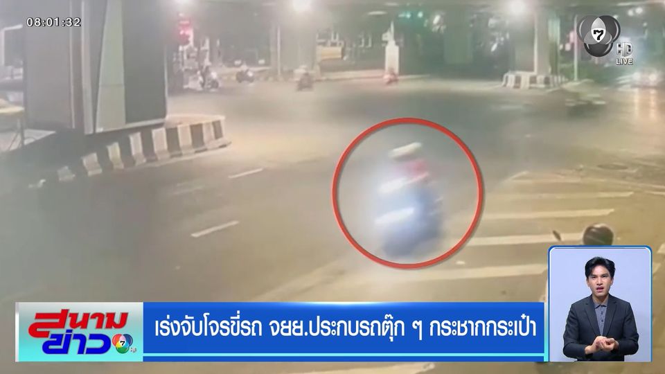 สนามข่าว 7 สี - คืบหน้าคดีคนร้ายขี่รถจักรยานยนต์ประกบรถตุ๊ก ๆ ก่อนกระชากกระเป๋านักท่องเที่ยวหญิงชาวฮ่องกง กลางดึก เวลา 01.30 น. วันที่ 25 กุมภาพันธ์ ในพื้นที่สถานีตำรวจนครบาลปทุมวัน ได้ทรัพย์สินไปหลายรายการ ทั้งโทรศัพท์มือถือและเงิน ประมาณ 2 หมื่นบาท