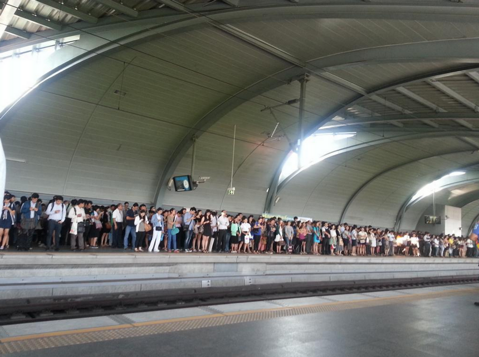 Airport link สถานีลาดกระบัง และภายในรถไฟ แน่นมาก