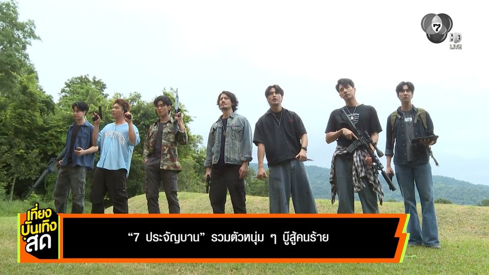เที่ยงบันเทิงสด - เย็นนี้ 7 ประจัญบาน งานบู๊ฉ่ำ ๆ มาแน่นอน มาดูลีลากันการบู๊ของเหล่าสายลับทั้ง 7 คน บอกเลยว่า หล่อ เท่ อันตรายมาก ๆ เค้ามารวมตัวกันบู๊ สู้กับฝั่งคนร้าย เพราะก่อนหน้านี้ หนุ่ม ๆ เค้าจะแยกย้ายกันไปปฏิบัติภารกิจตามความถนัดของตัวเอง แต่ครั้งนี้ใกล้จะได้เจอบอสใหญ่ที่ตามหากันมานานแล้ว ก็เลยต้องแท็คทีมมากันครบ ซึ่งใครที่รอชมฉากบู๊มัน ๆ ภาพสวย ๆ สไตล์ค่ายไนน์บีเวอร์ ฟิล์ม ห้ามพลาดเลย ผู้กำกับ พี่เวอร์ โอริเวอร์ ลงมาเทรนเองกับมือ แถมยังบวกกับความตลกของแต่ละคน ฮาแน่นอน