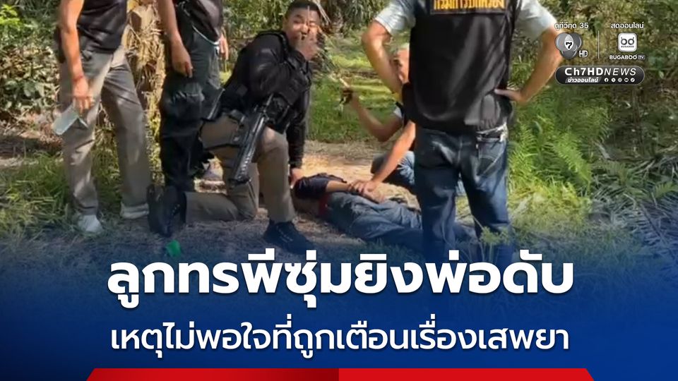 ตร.ชะอวดบุกจับลูกทรพีติดยาเสพติด ซุ่มยิงพ่อบังเกิดเกล้าดับ เหตุไม่พอใจที่ถูกพ่อตักเตือนเรื่องความประพฤติ แต่ยังปากแข็งปฏิเสธ