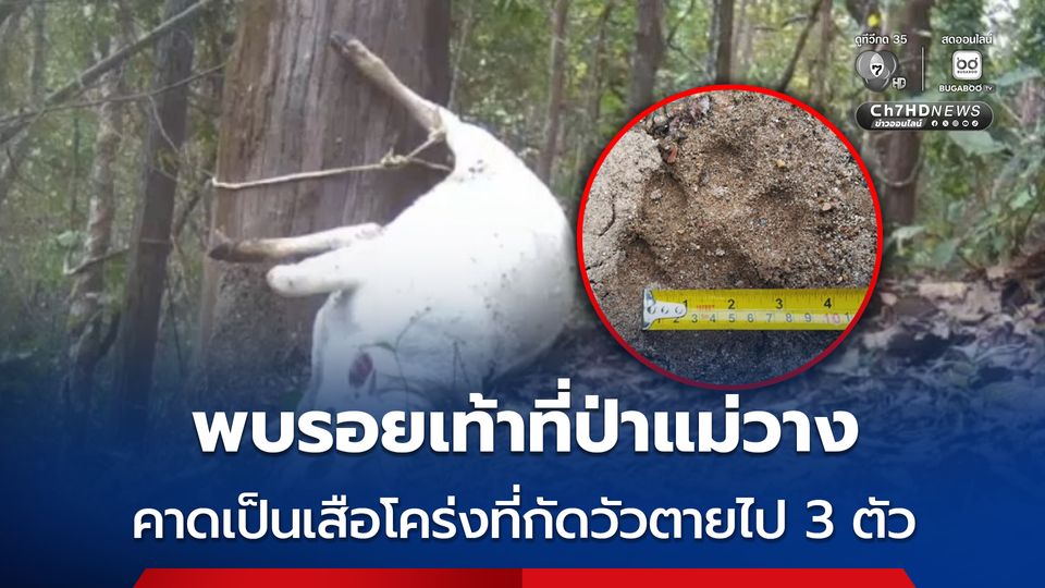 พบรอยเท้าเสือที่ป่าแม่วาง คาดเป็นตัวเดียวกันกับที่กัดวัวชาวบ้านตายไป 3 ตัว ในเขตอุทยานแห่งชาติดอยอินทนนท์