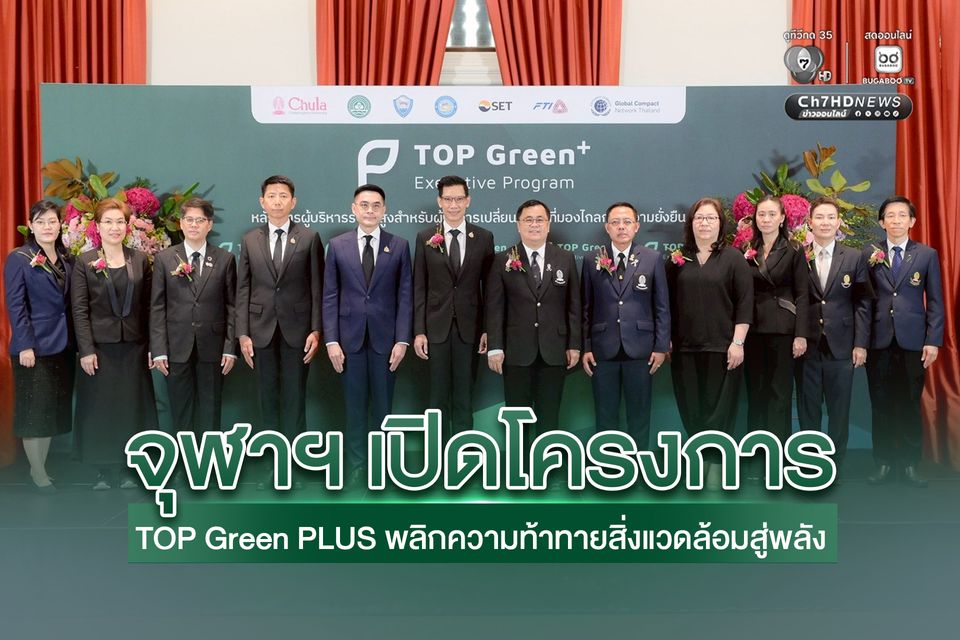 วันนี้ (26 ก.พ.69) จุฬาลงกรณ์มหาวิทยาลัย โดยสถาบันวิจัยสิ่งแวดล้อมเพื่อความยั่งยืน ร่วมกับเครือข่ายพันธมิตรภาคธุรกิจ และองค์กรชั้นนำ จัดพิธีเปิดโครงการ “TOP Green PLUS (TOP Green+)” หลักสูตรผู้นำระดับสูงที่มุ่งพัฒนาศักยภาพผู้นำองค์กรให้สามารถ “พลิกความท้าทายด้านสิ่งแวดล้อม” ให้กลายเป็นพลังขับเคลื่อนเชิงกลยุทธ์ เปิดมุมมองใหม่ในการสร้างคุณค่า เสริมความสามารถในการแข่งขัน และเชื่อมประสานความร่วมมือจากทุกภาคส่วน เพื่อเร่งการเปลี่ยนผ่านสู่ความยั่งยืนที่เกิดผลอย่างเป็นรูปธรรมทั้งในระดับองค์กรและระดับสังคม