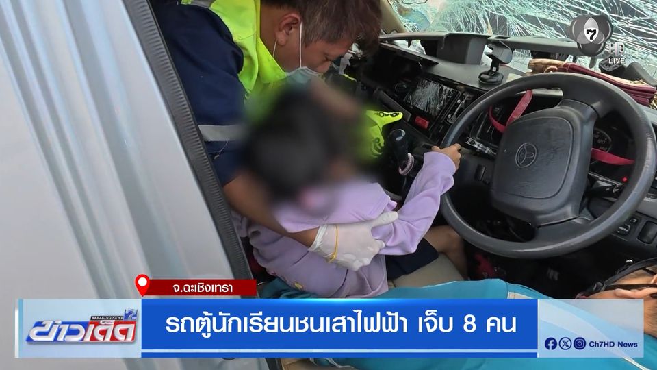 ข่าวเด็ด 7 สี - รถตู้รับส่งนักเรียนประสบอุบัติเหตุเสียหลักชนเสาไฟฟ้าข้างทาง นักเรียนบาดเจ็บ 8 คน เสียขวัญส่งเสียงร้องไห้ระงม