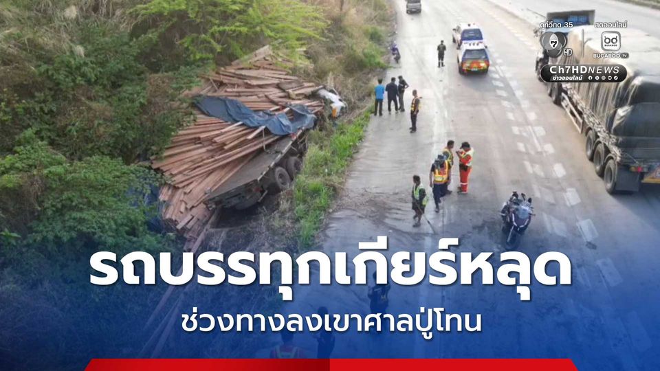 รถบรรทุกเกียร์หลุด ช่วงบริเวณทางลงเขาศาลปู่โทน ส่งผลให้รถเสียหลักลงข้างทาง มีผู้บาดเจ็บ 2 คน