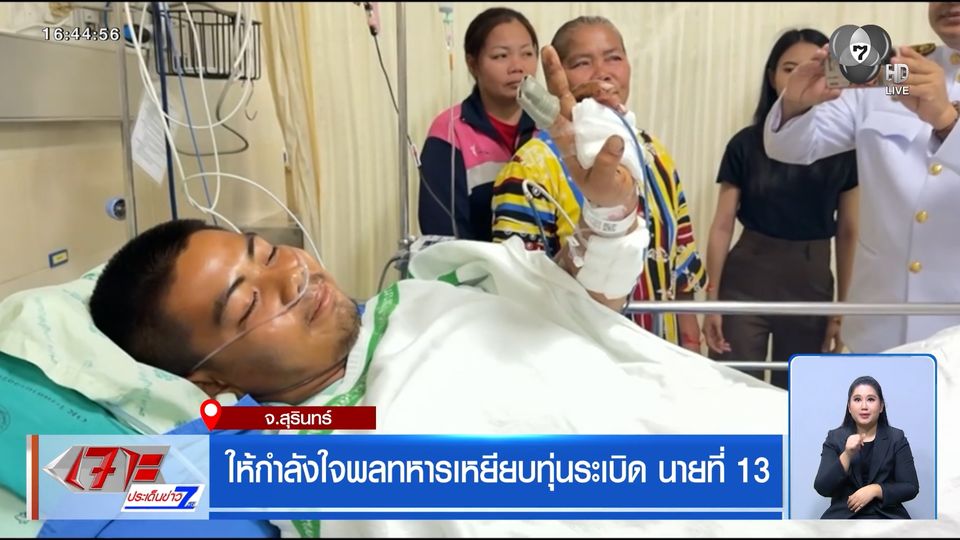 เจาะประเด็นข่าว 7HD - พระบาทสมเด็จพระเจ้าอยู่หัว พระราชทานดอกไม้และตะกร้าสิ่งของพระราชทาน ไปมอบแก่ พลทหารเดชศักดิ์ ตรีคำ ซึ่งได้รับบาดเจ็บจากการเหยียบกับระเบิดที่บริเวณช่องระยี อำเภอกาบเชิง จังหวัดสุรินทร์