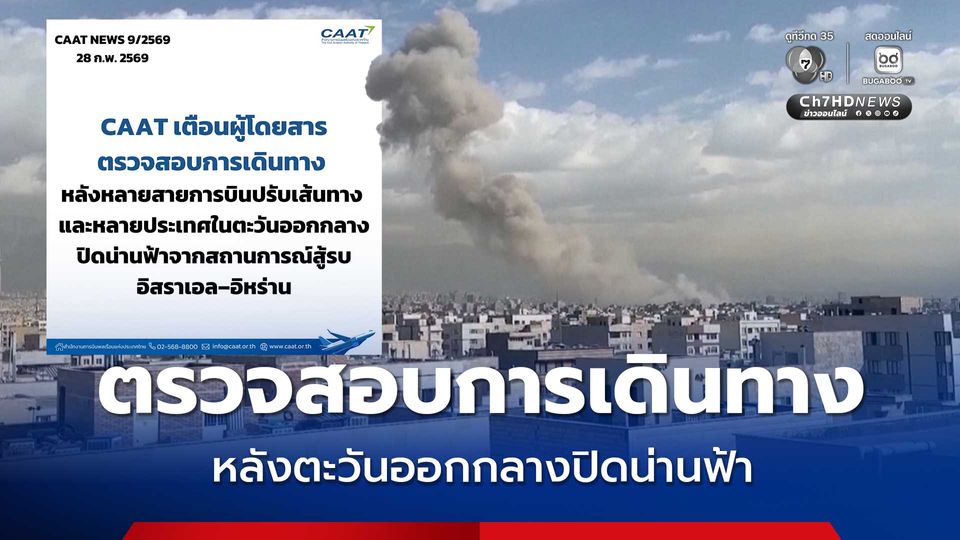 วันนี้ (28 ก.พ. 69) สำนักงานการบินพลเรือนแห่งประเทศไทย (CAAT) ขอแจ้งเตือนประชาชนและผู้โดยสารเกี่ยวกับสถานการณ์ความตึงเครียดทางทหารระหว่างอิสราเอลและอิหร่าน ซึ่งมีการเปิดฉากปฏิบัติการโจมตีทางอากาศและขีปนาวุธตอบโต้ซึ่งกันและกัน ส่งผลให้หลายประเทศในภูมิภาคตะวันออกกลางปิดน่านฟ้าหรือจำกัดการบินเพื่อความปลอดภัยของเที่ยวบินพลเรือน