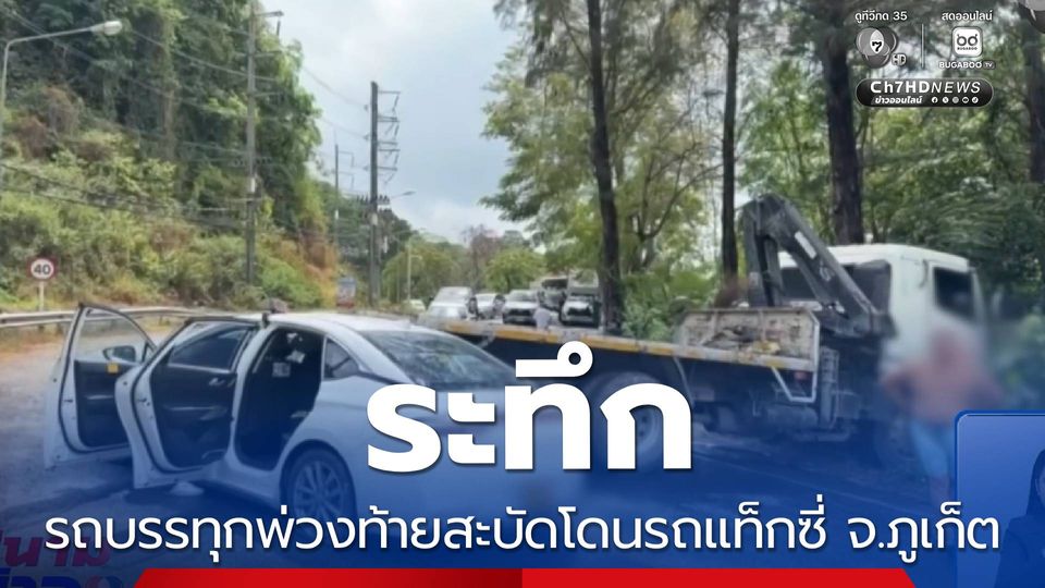 ระทึก รถบรรทุกพ่วงท้ายสะบัดโดนรถแท็กซี่ จ.ภูเก็ต