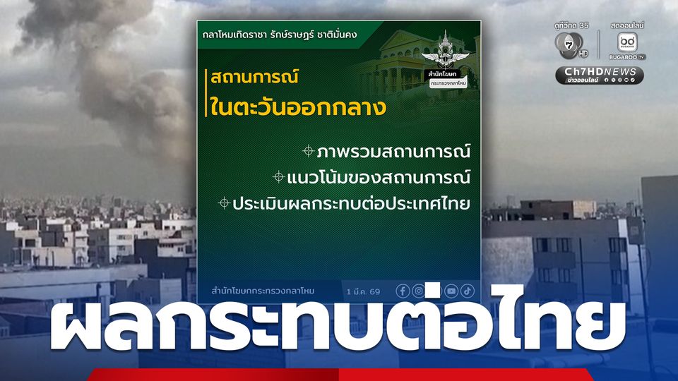 สำนักโฆษก ก.กลาโหม วิเคราะห์สถานการณ์ในตะวันออกกลาง แนวโน้มความเป็นไปได้ในระยะสั้น-ระยะกลาง ผลกระทบต่อประเทศไทย คาดแรงกดดันทางการทูตจากประเทศผู้นำเข้าพลังงานจะเพิ่มสูงขึ้น เพื่อจำกัดวงความขัดแย้งไม่ให้ลุกลามเป็นสงครามเต็มรูปแบบ
