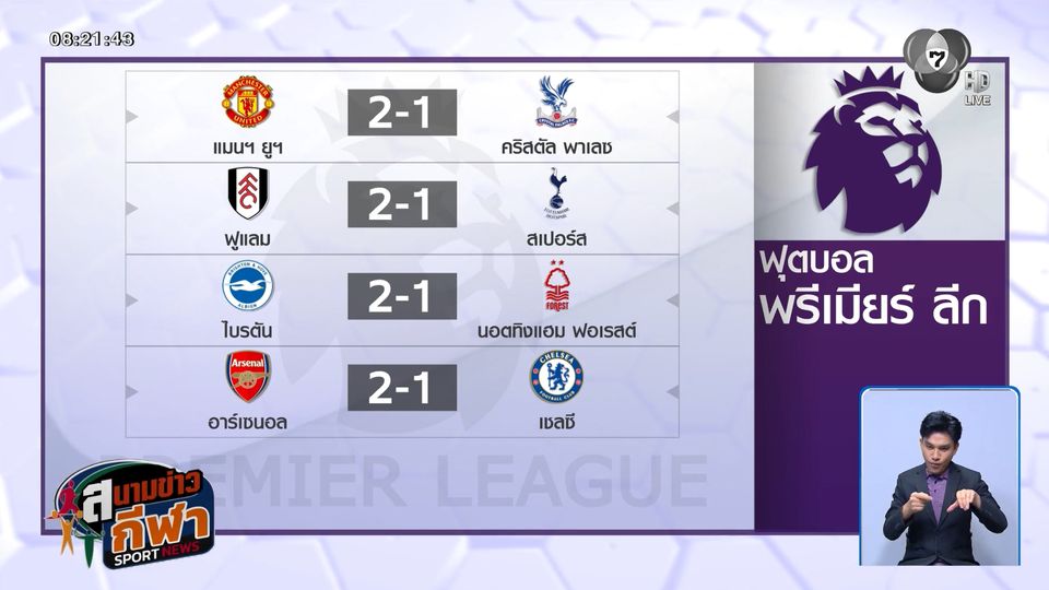 สนามข่าวกีฬา - ผลฟุตบอลพรีเมียร์ ลีก อังกฤษ เมื่อคืนที่ผ่านมา