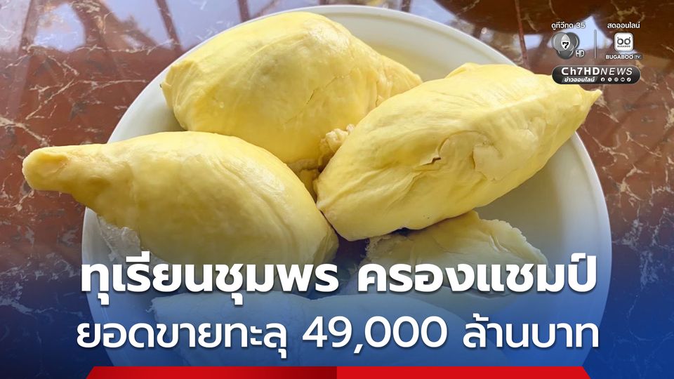 5 อันดับแรก ทุเรียน GI ยอดขายพุ่ง “ทุเรียนชุมพร” 49,000 ล้านบาท รองลงมา ทุเรียนทองผาภูมิ ทุเรียนภูเขาไฟศรีสะเกษ ทุเรียนสะเด็ดน้ำยะลา และ ทุเรียนหมอนทองระยอง ตามลำดบ