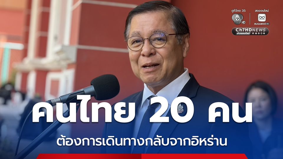 สีหศักดิ์ เชื่อสถานการณ์ยืดเยื้อ เป้าหมายคงไม่ใช่การขจัดภัยนิวเคลียร์เพียงอย่างเดียว เผย คนไทย 20 คน ต้องการกลับจากอิหร่าน เตรียมอพยพผ่านชายแดนตุรกี ขึ้นเครื่องพาณิชย์กลับไทย ส่วนแรงงานไทยในอิสราเอล ยังไม่กลับ
