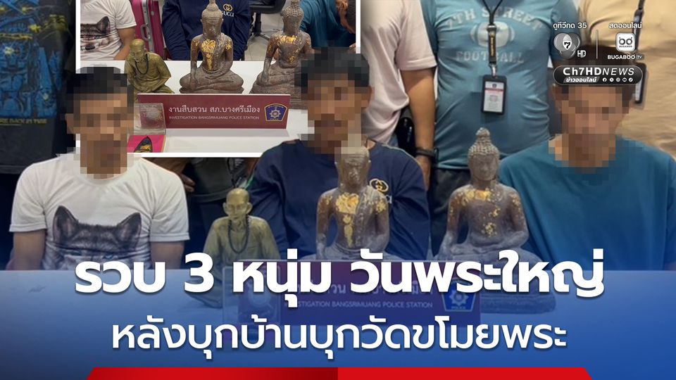 รวบ 3 หนุ่ม วันพระใหญ่ หลังก่อเหตุทุบกระจกบ้านผู้สมัคร ส.ท. และบุกวัด ขโมยพระพุทธรูป หวังนำไปขาย สารภาพ หาเงินซื้อยาเสพติด หลังถูกจับตรวจร่างกายพบสารเสพติดทั้ง 3 คน