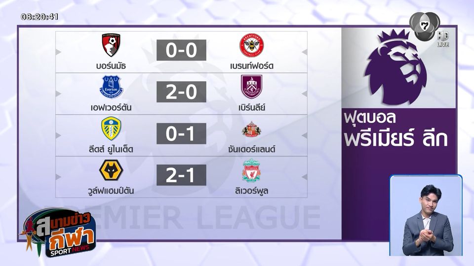 สนามข่าวกีฬา - ผลฟุตบอลพรีเมียร์ ลีก อังกฤษ
