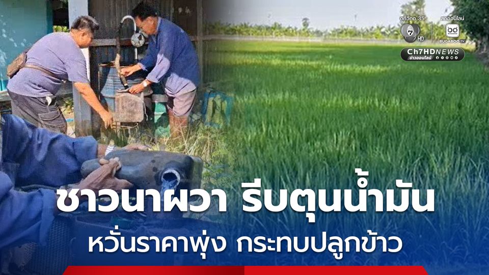 ชาวนาผวา รีบตุนน้ำมัน หวั่นสงครามราคาน้ำมันพุ่งสูง กระทบการปลูกข้าว วางแผนหากไม่มีน้ำมันใช้จะติดตั้งใช้ระบบโซลาร์เซลล์