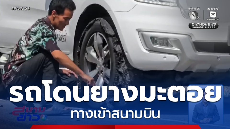 สนามข่าว 7 สี - ความทุกข์ร้อนประชาชนที่มาใช้บริการท่าอากาศยานร้อยเอ็ด เดือดร้อนหนัก หลังมีการทำถนนลาดยางมะตอยบริเวณทางเข้า-ออก แล้วไม่แบ่งเลนเหลือให้รถวิ่ง ทำให้รถทุกคันที่ขับเข้ามาในสนามบินโดนยางมะตอยติดเต็มล้อทุกคัน แล้วใครจะรับผิดชอบ