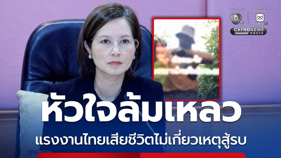 แรงงานไทยในอิสราเอลหัวใจล้มเหลว เสียชีวิตจากโรคประจำตัว ไม่เกี่ยวข้องเหตุสู้รบ “ตรีนุช” แสดงความเสียใจกับครอบครัว มอบหมายหน่วยงานในพื้นที่เข้าเยี่ยม-ให้กำลังใจ ยืนยันจนถึงขณะนี้ยังไม่มีแรงงานไทยเสียชีวิต หรือได้รับบาดเจ็บ จากสถานการณ์การสู้รบในตะวันออกกลาง