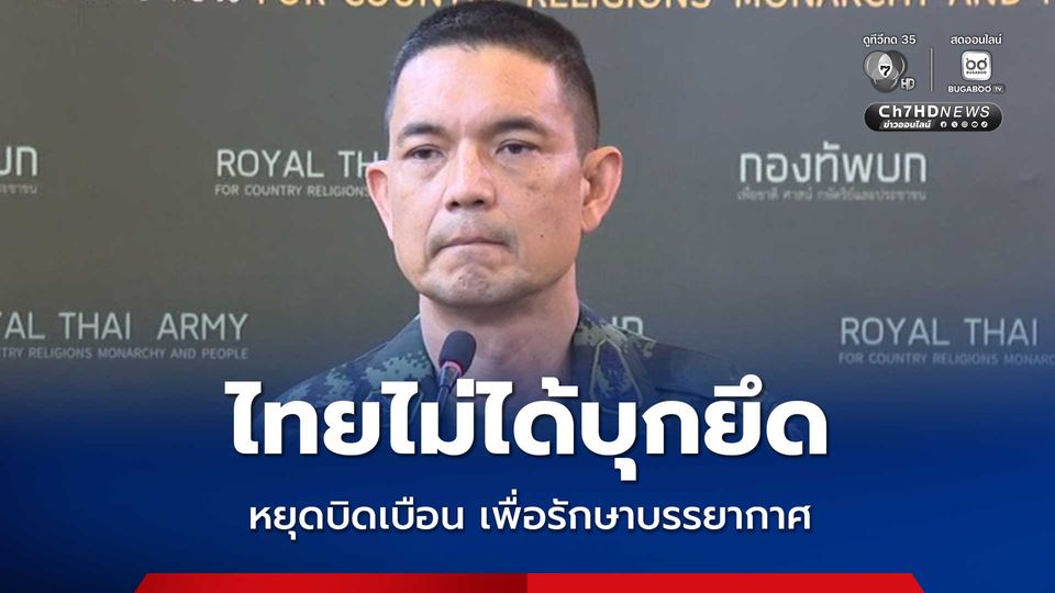 กองทัพบกโต้ข้อกล่าวหากัมพูชา ย้ำไทยไม่ได้บุกยึดดินแดน พื้นที่ควบคุมเป็นพื้นที่อธิปไตยของไทย ขอกัมพูชาอย่าบิดเบือน เพื่อรักษาบรรยากาศความร่วมมือตามข้อตกลง