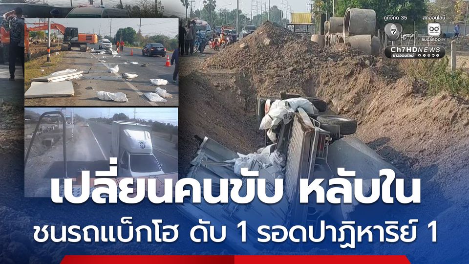 เปลี่ยนคนขับรถส่งน้ำแข็งขากลับ คาดเพื่อนหลับใน ข้ามเลนพุ่งชนรถแบ็กโฮขุดวางท่อระบายน้ำริมถนน รถแหลก คนขับเสียชีวิต เพื่อนร่วมงานนั่งมาด้วยรอดปาฏิหาริย์ ไม่ได้รับบาดเจ็บ