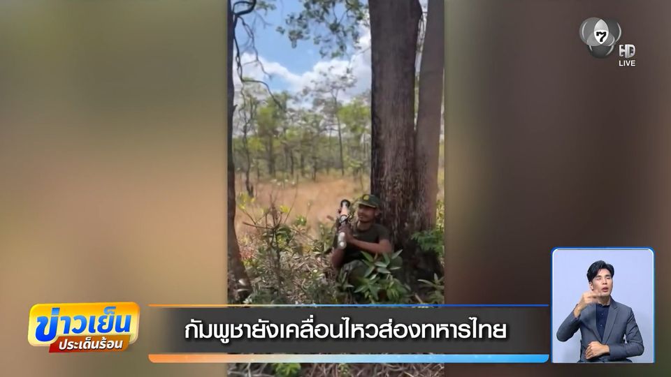 อย่างคลิปนี้ แอบมาไทยอยู่ไกล ๆ เฝ้าทหารไทยเคลียร์พื้นที่ พร้อมแกล้งทำท่ายกเครื่องยิงจรวด RPG บอกได้คำเดียวว่าเก่งมาก เก่งอยู่หลังต้นไม้