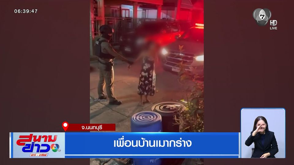 สนามข่าวเสาร์-อาทิตย์ - ที่ จังหวัดนนทบุรี น้ำเปลี่ยนนิสัย หญิงข้างบ้านเมาสุราหนัก พูดจาไม่รู้เรื่อง ถือมีดบุกมาที่บ้านเพื่อนบ้าน ทำเอาเดือดร้อนกลัวเกิดอันตราย