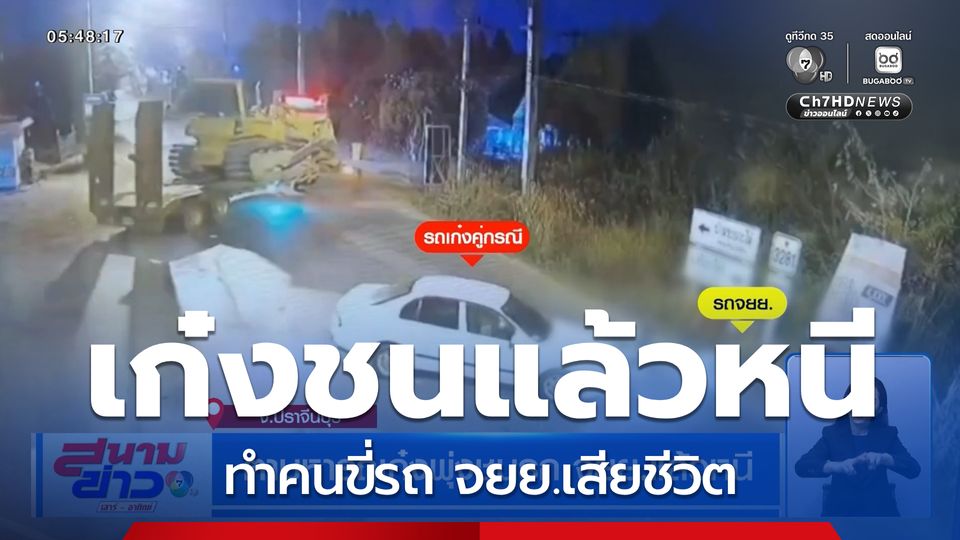 ที่ จังหวัดปราจีนบุรี รถเก๋งพุ่งชนรถจักรยานยนต์แล้วหลบหนี