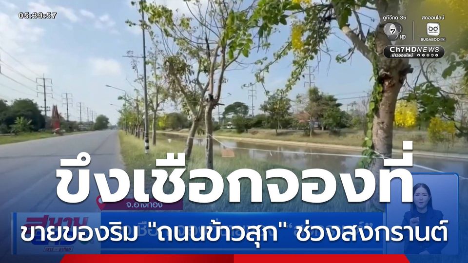 สนามข่าวเสาร์-อาทิตย์ - อีกเป็นเดือนกว่าจะถึงวันสงกรานต์ แต่ที่อ่างทอง เริ่มคึกคักแล้ว เพราะชาวบ้านแห่ขึงเชือกจองที่ขายของริม "ถนนข้าวสุก"