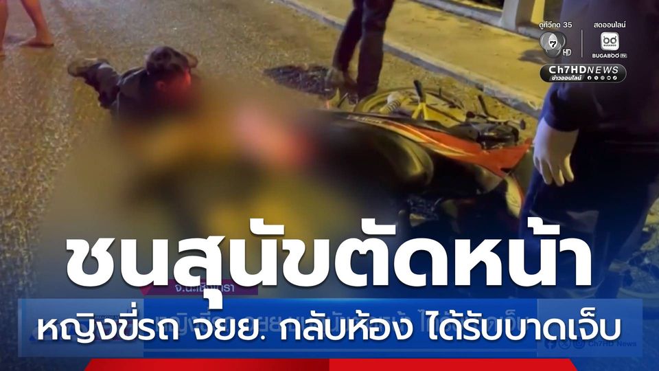ข่าวเด็ด 7 สี - หญิงขี่รถจักรยานยนต์กลับห้อง ระหว่างทางมีสุนัขวิ่งออกมาตัดหน้าเบรกไม่ทันก่อนชนเต็มแรง จนเสียหลักล้มได้รับบาดเจ็บ ส่วนสุนัขตายคาที่