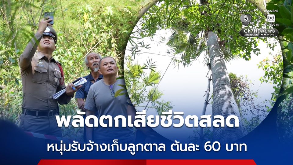 สลด หนุ่มรับจากเก็บลูกตาล ต้นละ 60 บาท กำลังขึ้นต้นที่ 3 พลัดตกลงมากระแทกพื้นเสียชีวิต เผยรับจ้างเก็บลูกตาลเป็นอาชีพหลัก คาดวูบทำให้พลาดพลัดตก