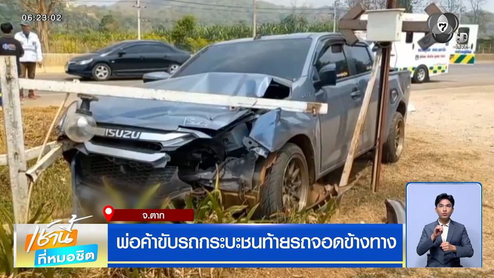 พ่อค้าขับรถกระบะชนท้ายรถจอดข้างทาง จ.ตาก