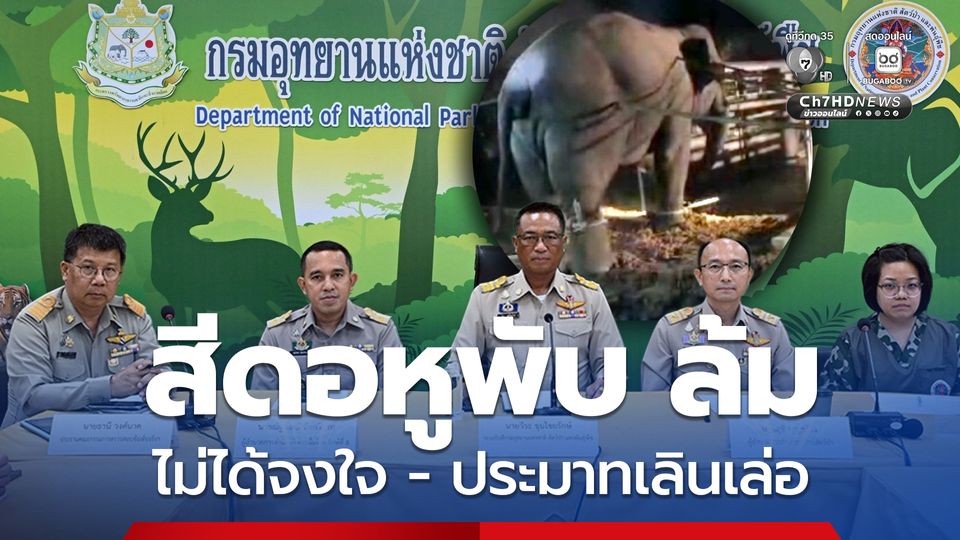 วันนี้ (9 มี.ค.69) นายวีระ ขุนไชยรักษ์ รองอธิบดีกรมอุทยานแห่งชาติ สัตว์ป่า และพันธุ์พืช ในฐานะผู้กำกับดูแลคณะกรรมการตรวจสอบข้อเท็จจริง กรณีช้างป่าสีดอหูพับเสียชีวิตระหว่างการเคลื่อนย้าย เป็นประธานการแถลงข้อเท็จจริงการเสียชีวิตของช้างป่า "สีดอหูพับ" เมื่อวันที่ 3 ก.พ.69 ในระหว่างการดำเนินการจับและเคลื่อนย้ายจากพื้นที่อุทยานแห่งชาติภูเวียง จังหวัดขอนแก่น เพื่อนำไปปรับพฤติกรรมในโครงการฟื้นฟูอาหารช้างป่าภูหลวงฯ จังหวัดเลย ซึ่งคณะกรรมการฯ ได้ดำเนินการรวบรวมพยานเอกสารรวม 117 ชุด และบันทึกถ้อยคำพยานบุคคลที่เกี่ยวข้องจำนวน 20 ราย เรียบร้อยแล้ว จึงขอแถลงสรุปผลการตรวจสอบใน 3 ประเด็นสำคัญ ดังนี้