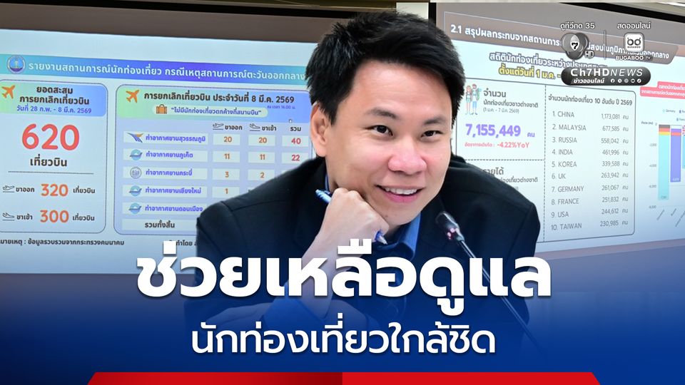 วันนี้ (9 มี.ค.69) นายอรรถกร ศิริลัทธยากร รัฐมนตรีว่าการกระทรวงการท่องเที่ยวและกีฬา ประชุมติดตามสถานการณ์และหารือแนวทางช่วยเหลือนักท่องเที่ยวที่ได้รับผลกระทบจากสถานการณ์ความไม่สงบในภูมิภาคตะวันออกกลาง ณ ห้องประชุม ชั้น 9 ศูนย์ราชการเฉลิมพระเกียรติฯ อาคาร C กระทรวงการท่องเที่ยวและกีฬา โดยมีผู้บริหารและหน่วยงานที่เกี่ยวข้องเข้าร่วมประชุม เพื่อประเมินผลกระทบด้านการท่องเที่ยวและเตรียมมาตรการรองรับอย่างใกล้ชิด