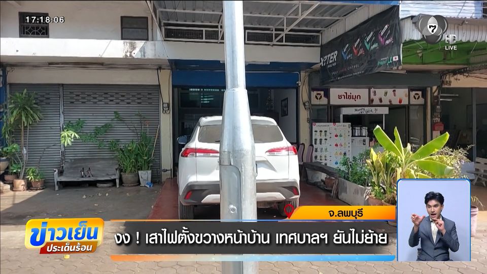 ข่าวเย็นประเด็นร้อน - เจ้าของบ้านตึกแถว งง ! เทศบาลเมืองลพบุรี ติดตั้งเสาไฟโซลาร์เซลล์ขวางหน้าบ้าน ทำให้รถยนต์เข้าออกบ้านไม่ได้