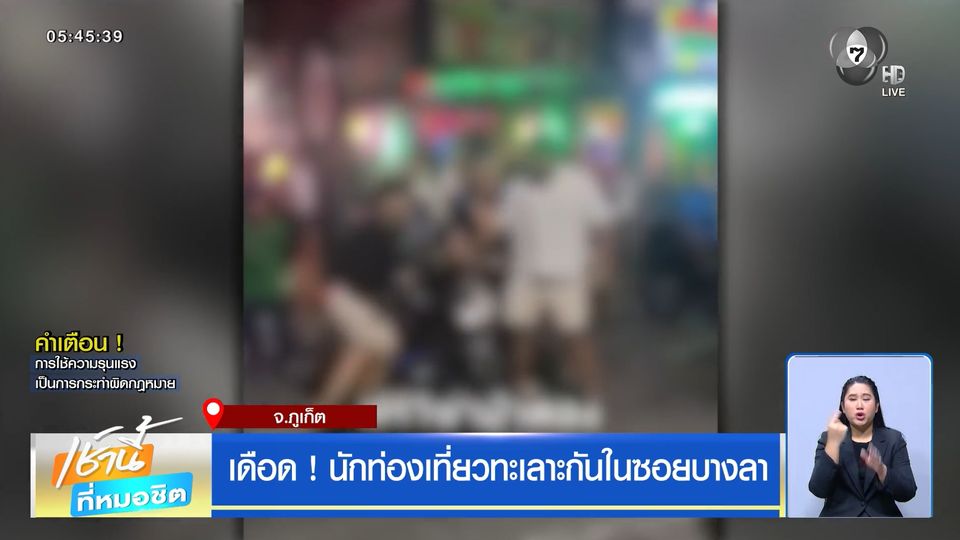 เช้านี้ที่หมอชิต - เกิดเหตุนักท่องเที่ยวทะเลาะวิวาทกันกลาง ซอยบางลา แหล่งท่องเที่ยวยามราตรีชื่อดังของภูเก็ต ด้านชาวบ้านหวั่นพฤติกรรมแบบนี้ ทำให้เสียภาพลักษณ์เมืองท่องเที่ยว