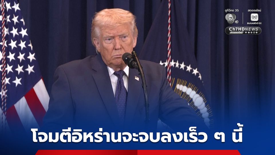 (10 มี.ค.69) สำนักข่าวซินหัว รายงานว่า เมื่อวันจันทร์ (9 มี.ค.) โดนัลด์ ทรัมป์ ประธานาธิบดีสหรัฐฯ เปิดเผยกับผู้สื่อข่าวว่าปฏิบัติการโจมตีอิหร่านของสหรัฐฯ และอิสราเอลยังจะไม่จบลงภายในสัปดาห์นี้แต่จะจบลงเร็ว ๆ นี้
