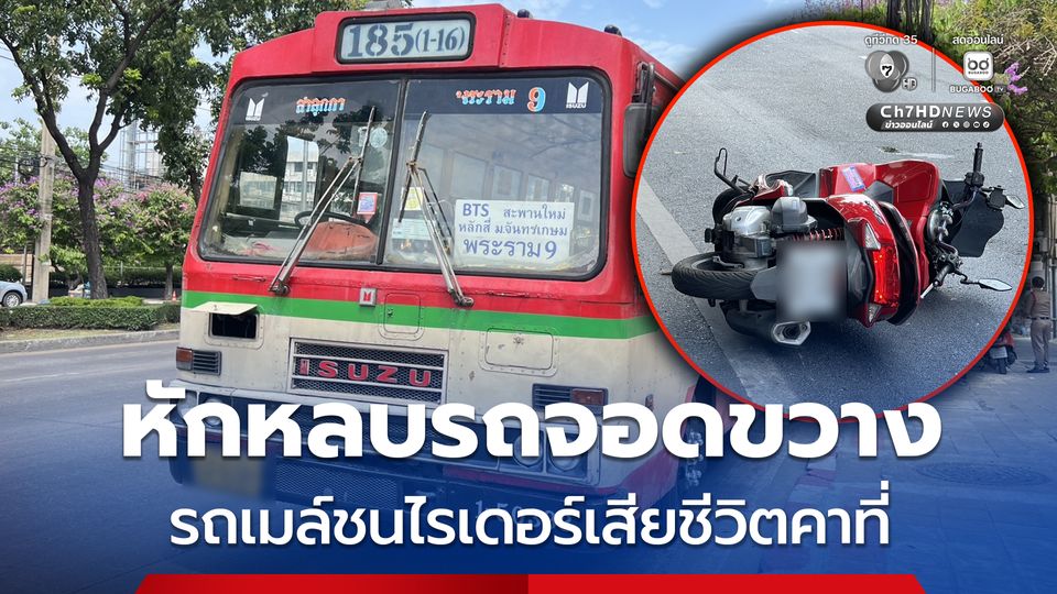 อุบัติเหตุสลด รถเมล์หักหลบรถจอดขวางเลนบนสะพานข้ามคลอง พุ่งชนไรเดอร์ เสียชีวิตคาที่ริมถนนรัชดาภิเษก