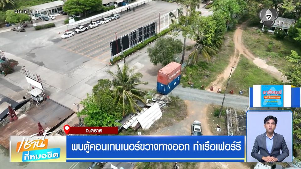 เช้านี้ที่หมอชิต - ที่จังหวัดตราด มีคนนำตู้คอนเทนเนอร์วางขวางทางออกท่าเรือเฟอร์รี ข้ามฟากเกาะช้าง โดยไม่ทราบสาเหตุ ส่งผลให้การระบายรถล่าช้า การจราจรติดขัด